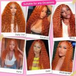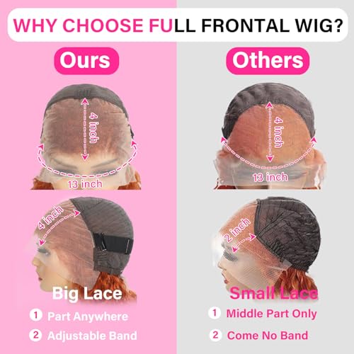 • 【Full Frontal Deep Wave Wig Human Hair Advantages】Our Ginger Wig Have a Larger Lace Area. True To Length , No Chemical Processing, Soft, Smooth As Silky,No Tangle,No Shedding. Pre-Plucked Baby Hair, 180% Density Full And Thick,Blached Knots