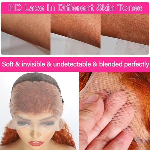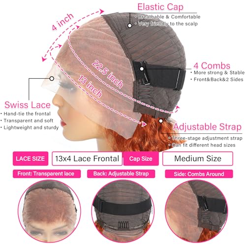 • 【Ginger Curly Lace Front Wig Human Hair Cap Structure】Average Size Cap(22.5 Circumferences Inch ) ,If Need Larger Or Smaller ,Could Customize . Comes With Elastic Band And 4 Combs,13×4 Transparent Breathable,More Comfortable And Match Head Perfectly