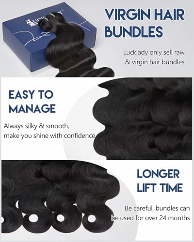 Lucklady 16A Raw Bundles Human Hair Body Wave, 4 Bundles 24 26 28 30 Inch Body Wave Bundles Human Hair, Triple Lifespan Virgin Remy hair