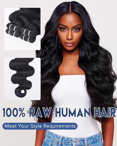 • True to Length & Weighed: 14-30 Inch Raw Hair Body Wave Bundles, Double Machine Weft, Tight and Neat Weft, Soft and Bouncy, Each Human Hair Bundle Delivers Full Bodied Volume at Its True Length and Full Weight (100-105g) for Salon-Perfect Results.