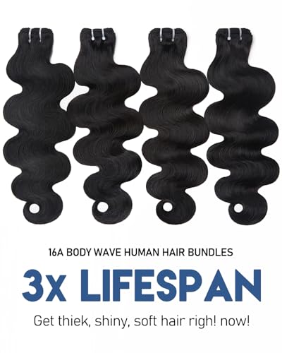 • Durable and Versatile Human Hair Bundles: 16A High Quality Body Wave Bundles Human Hair 3x Longer-Lasting Than Regular Virgin Hair, Perfect for Daily Wear, Protective Styles, or Glamorous Transformations.